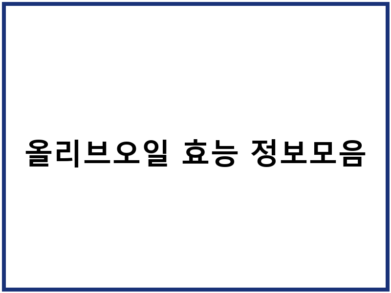올리브오일 섭취 방법 가이드