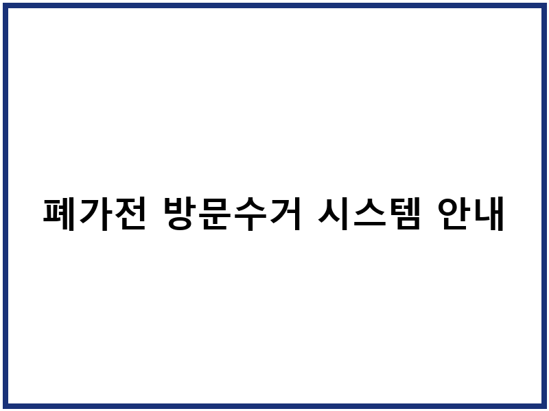 폐가전 방문 수거 예약은 온라인 시스템을 통해 간편하게 진행할 수 있습니다. 아래는 기본적인 예약 과정입니다.