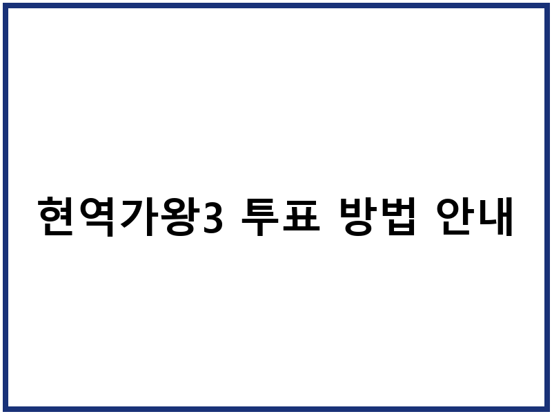 현역가왕3 시청자 투표 참여는 프로그램의 결과에 직접적인 영향을 미치는 중요한 요소입니다. 본 가이드에서는 성공적인 투표를 위한 필수 정보와 절차를 상세히 안내하여, 응원하는 참가자에게 효과적으로 힘을 실어줄 수 있도록 돕겠습니다. 투표 참여 방법부터 횟수, 주의사항까지 한눈에 파악할 수 있습니다.