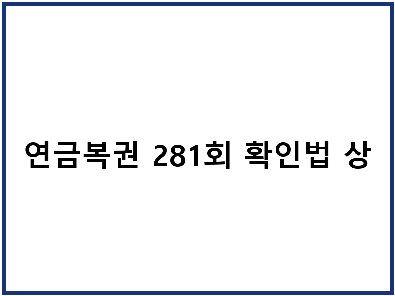 연금복권 281회 확인법 상세정보