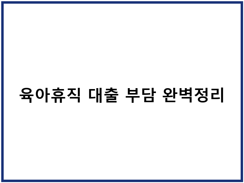 육아휴직 대출 부담 완벽정리