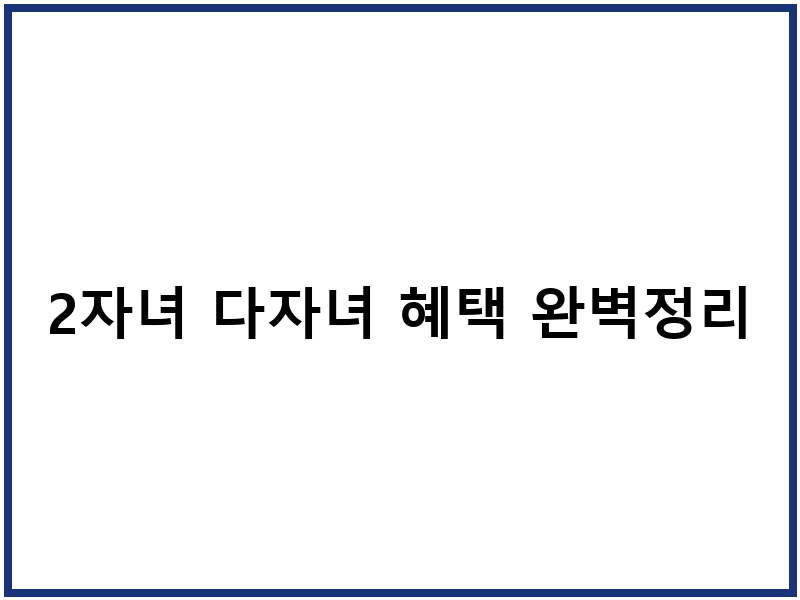 2자녀 가구의 정부 지원 혜택에 대한 궁금증이 높습니다. 많은 분들이 2자녀는 다자녀 혜택에서 제외될 것이라고 오해하지만, 실제로는 다양한 지원이 존재합니다. 2026년까지 정부 지원 혜택을 놓치지 않도록 2자녀 가구를 위한 다자녀 혜택 정보를 상세히 분석하여 제공합니다. 2자녀 다자녀 혜택 관련 최신 정보와 신청 방법을 확인하시기 바랍니다. 2자녀 다자녀 혜택 현황 2자녀 가구의 경우, 셋째 이상 자녀를 … 더 읽기