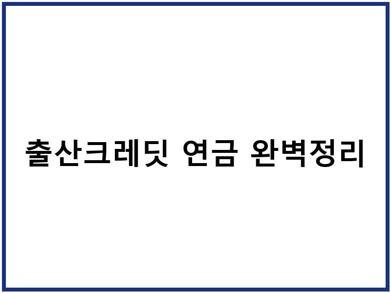 출산크레딧 연금 완벽정리