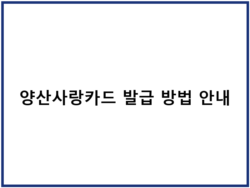 양산사랑카드 발급 방법 안내