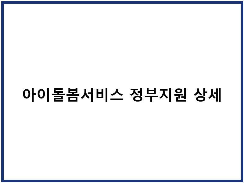 아이돌봄서비스 정부지원 상세정보