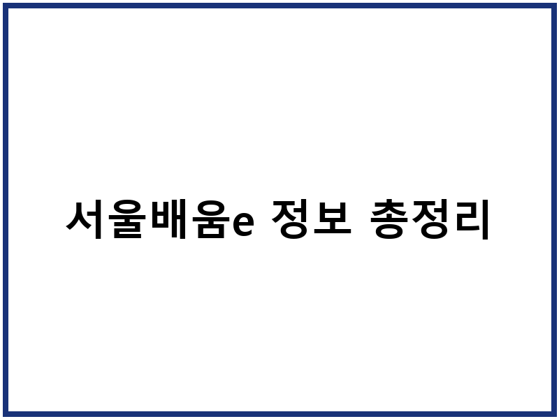 서울배움e 정보 총정리