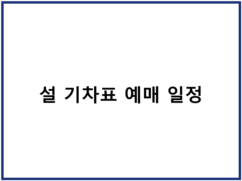 설 기차표 예매 일정